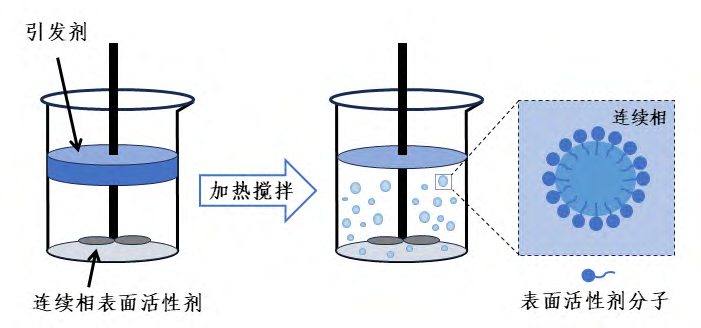 关键参数:乳化剂浓度(如超过CMC时胶束成核)、搅拌速率。