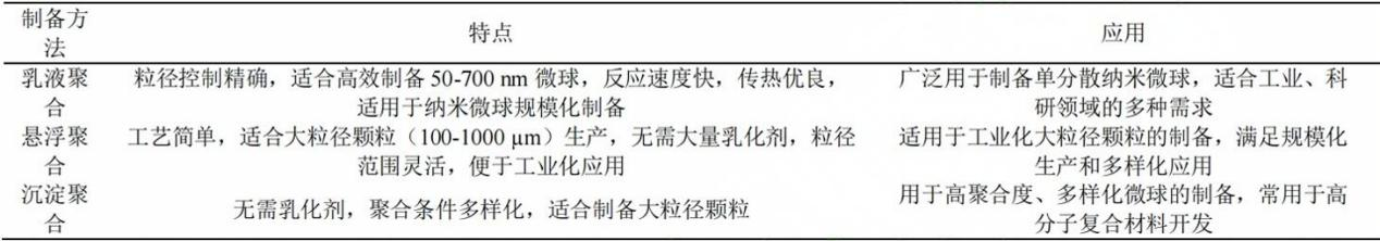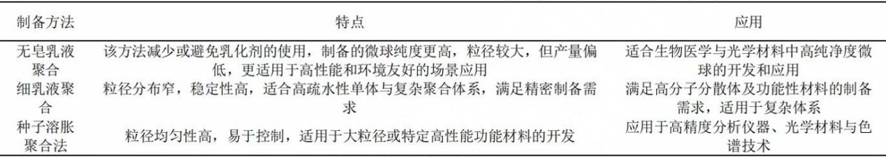 表1 传统聚苯乙烯微球的制备方法、特点及应用