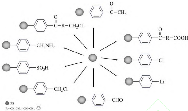 图3 聚苯乙烯微球表面引入特定功能化基团