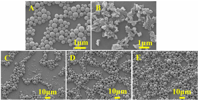 研究团队对比了二氯甲烷(DCM)和乙酸乙酯(EA)两种常用溶剂,发现溶剂类型直接影响微球最终形貌和粒径分布: