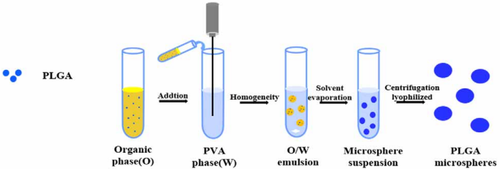 PLGA微球制备方法多样,包括乳化溶剂挥发法、喷雾干燥法和相分离法等。其中乳化溶剂挥发法凭借设备简单、操作方便和工艺成熟等优势,成为实验室小批量制备的首选方法。