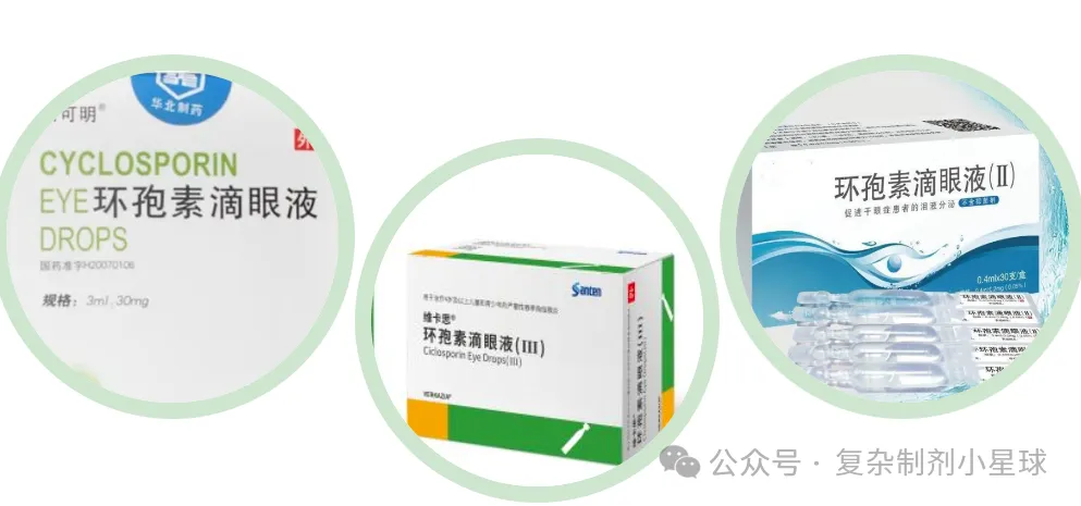0.05%环孢素滴眼液(Ⅱ)(0.4 mL:0.2 mg):主要用于与角结膜干燥症相关的眼部炎症所致的泪液生成减少的患者;根据目前所了解到的情况,以后还会上市环孢素A眼凝胶等品种。